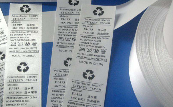 印唛叫标签,洗水唛,印刷业中的其中一种作业方式,相对柯式胶印来说较简单,产品一般常用于服装,鞋子,帽子,内衣,被,以及其他的日常用品或纺织。品,目的是让顾客了解该产品的材料成份以及洗水的标准