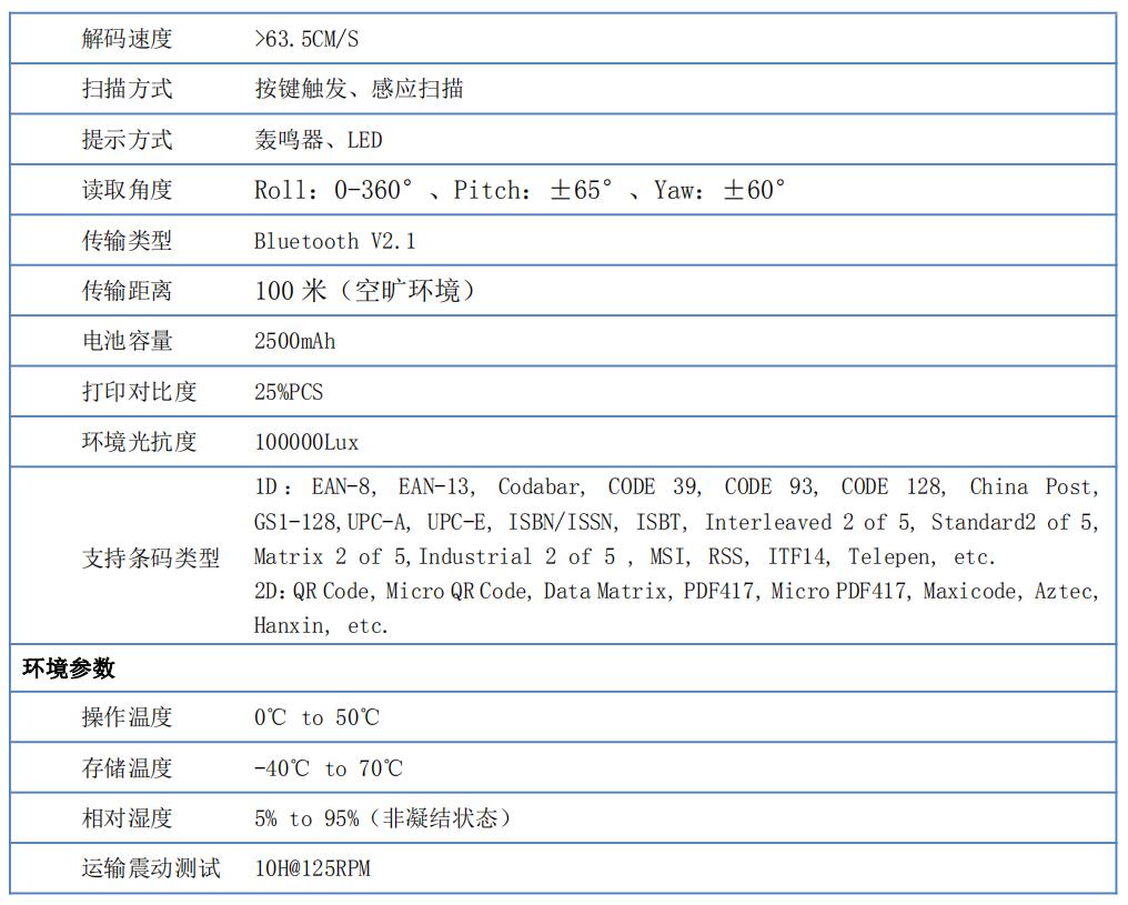 Ca-405-W蓝牙无线手持条码扫描枪的高性能配置: